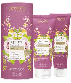 Douchegel Hippie rose; heerlijke geuren van roos, iris, vanille en sinaasappel. Plantaardige emulsies reinigen de huid bijzonder mild en behouden de huidflora.