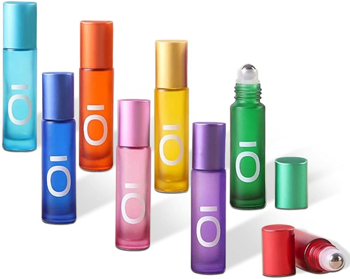 Roll on glazen flesje in diverse kleuren met roestvrijstalen kogel.